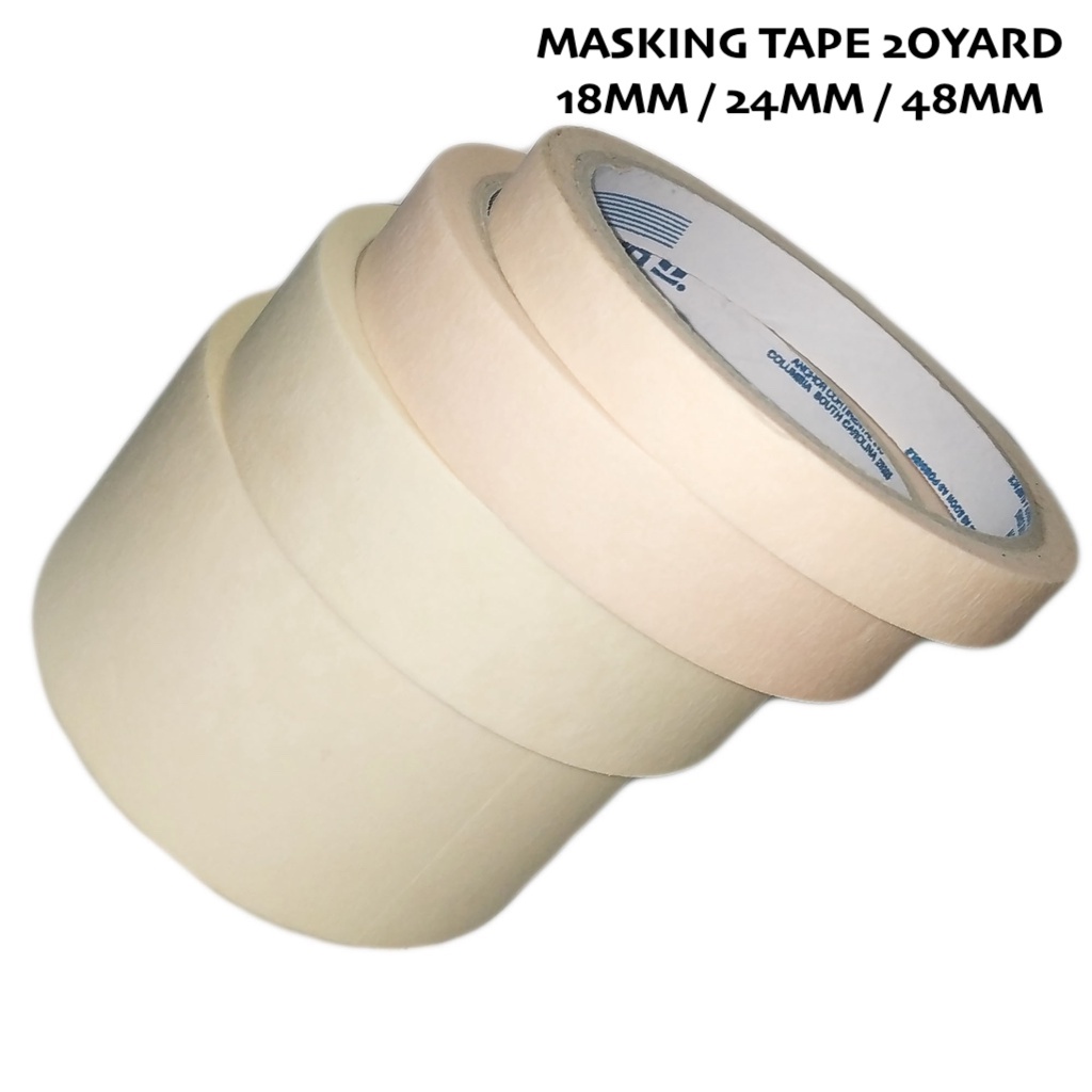 Premium Masking Tape 16mm / 24mm / 48mm X 20 Yard Extra Long (Approx. 60FT)