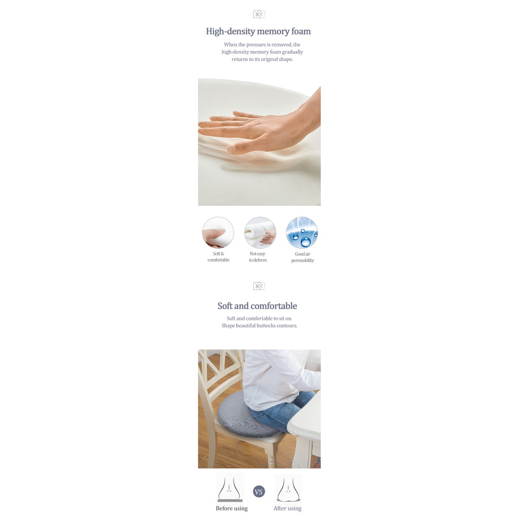 Premium Memory Foam Cushion Office Chair Cushion Thick Seat Pad Dining Chair Mat Pure Cotton Cover / 5 Colors Available