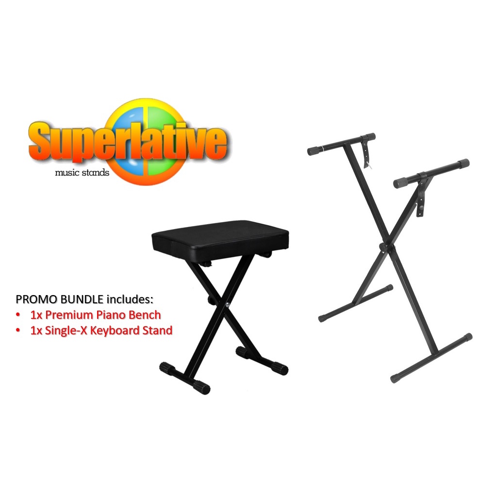 Premium Piano Bench Single-X Keyboard Stand Stool Piano Stand Promo Bundle