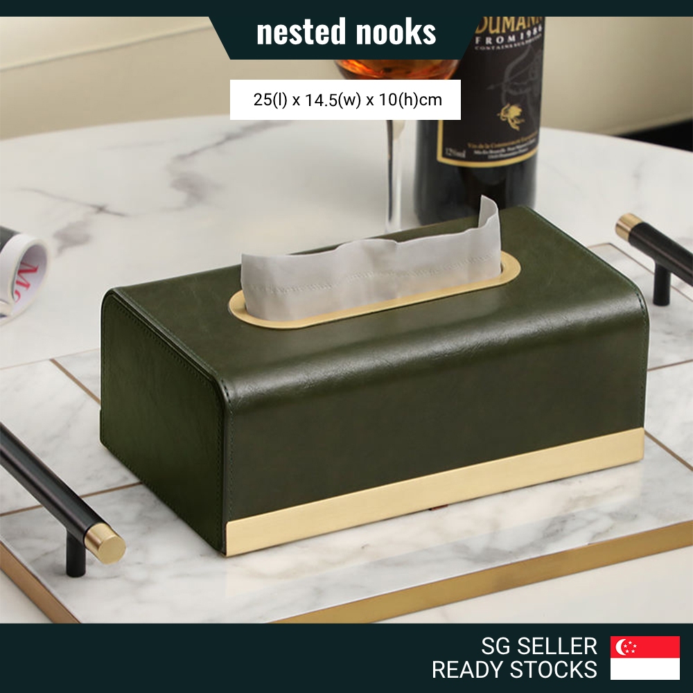 Premium Quality Luxury Modern Faux PU Leather Tissue Storage Box Holder Marble Gold Rectangle Tissue Box Cover