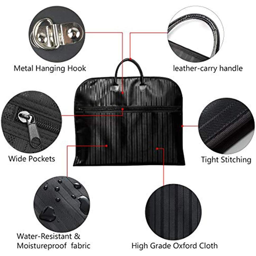 Premium Thick Black Coat Carrier Bag Dustproof Breathable Garment Cover Travel Bag with Carry Handles and Metal Eyehole