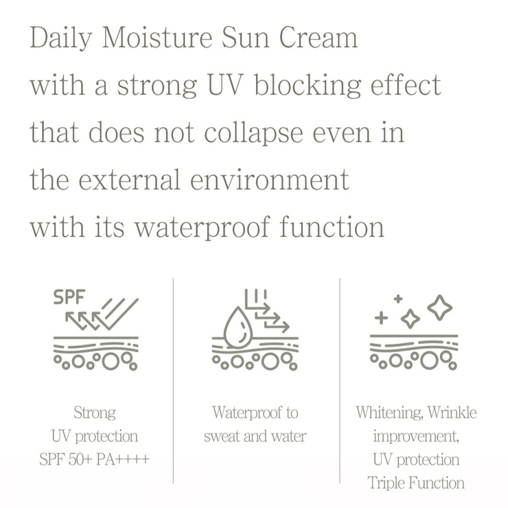 Pretty Skin Daily Moisture, Waterproof, Strong UV protection Sun Cream SPF 50+PA++++ 70ml - HEBELOFT