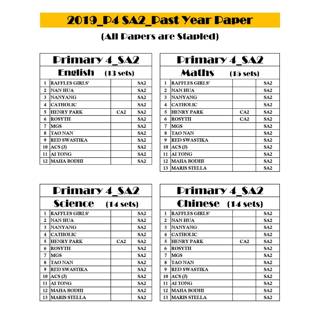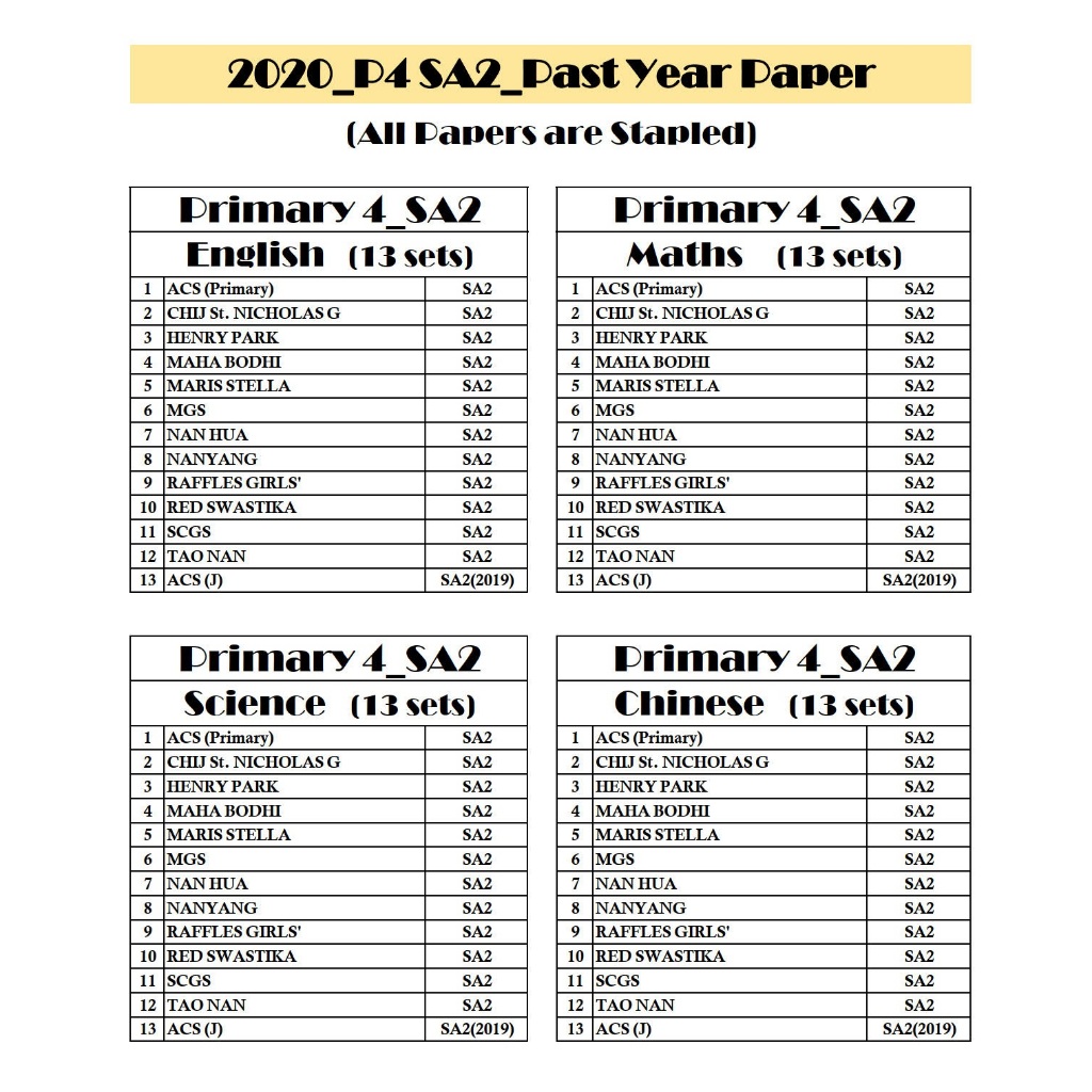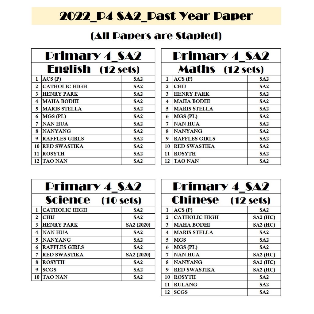 Primary 4 SA2 | 2022 / 2020 / 2019 | Exam Papers (Printed Copy) Past Year Papers Practical School Exam Papers