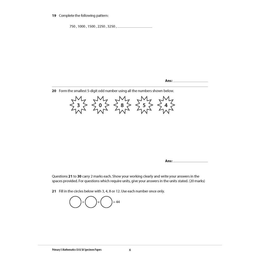 Primary 5 Mathematics CA & SA Specimen Papers / P5 Mathematics Assessment Book / Upper primary math exam papers
