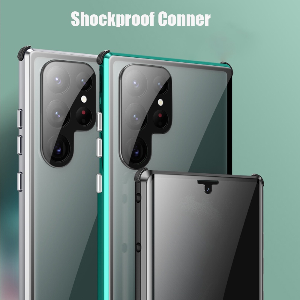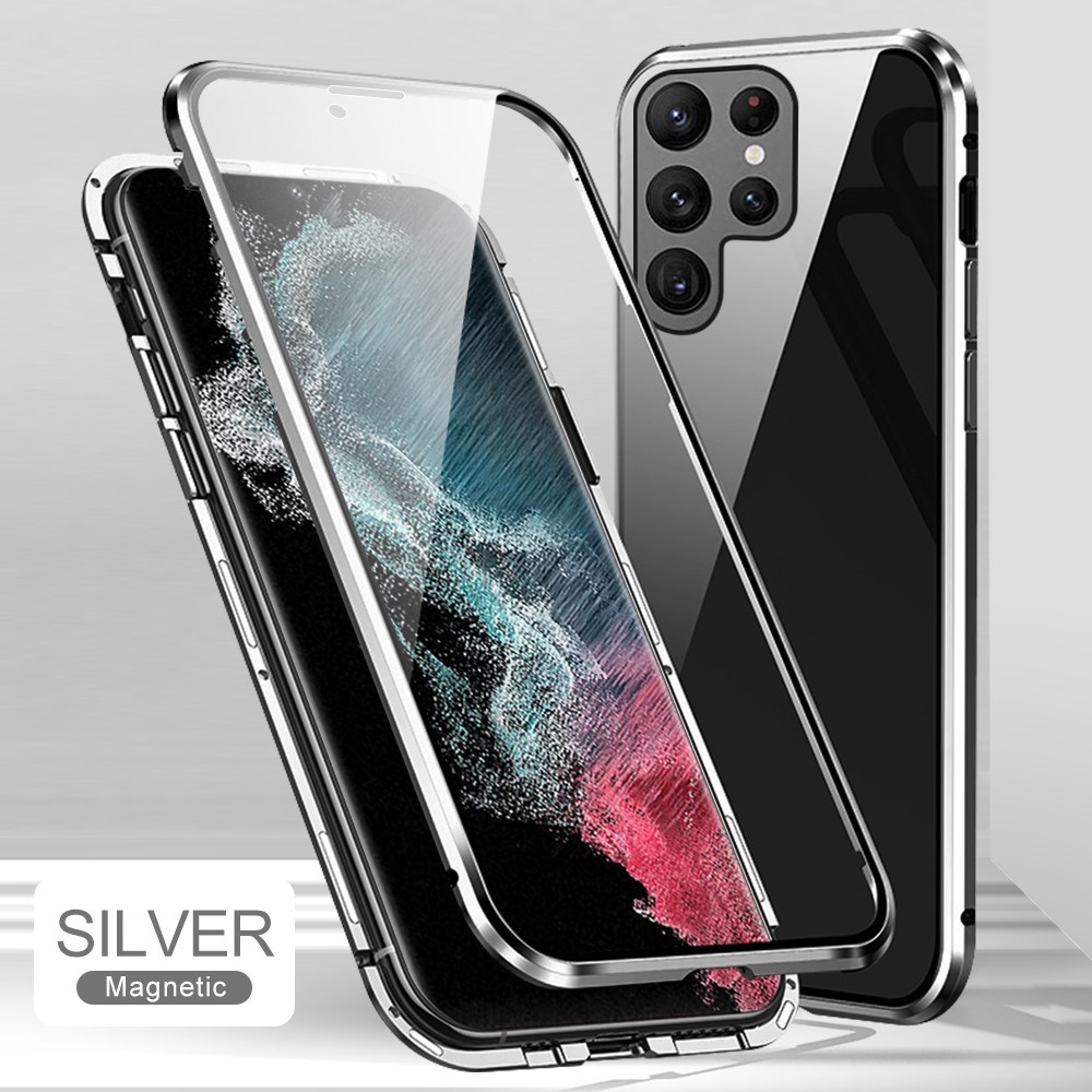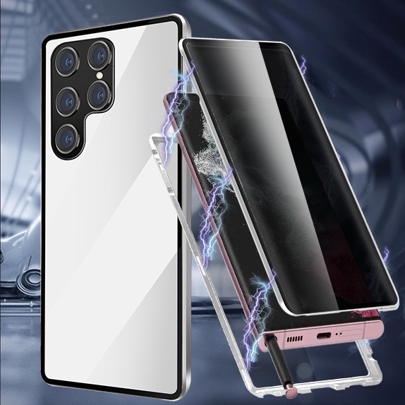 Privacy Magnetic Case for Samsung Galaxy S22 S23 Ultra, Anti Peeping Double Sided Tempered Glass Phone Case, Full Protective Wireless Charger Case for Galaxy S22 Ultra 5G 6.8