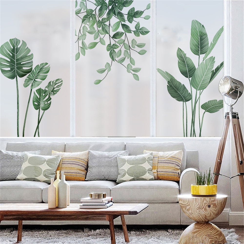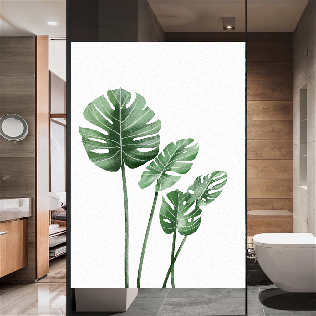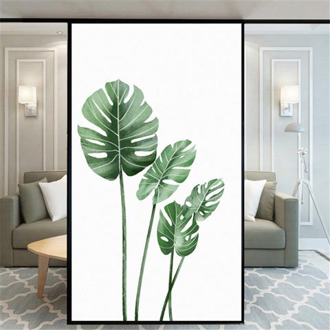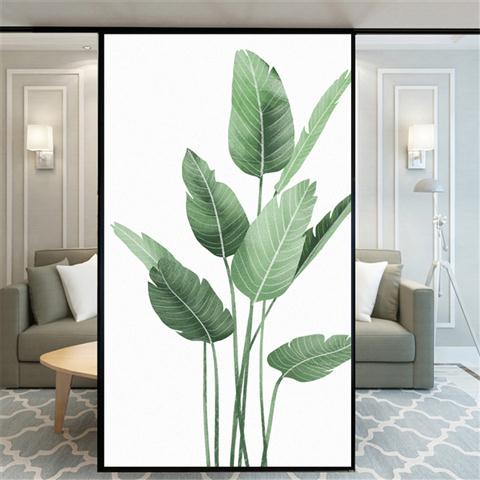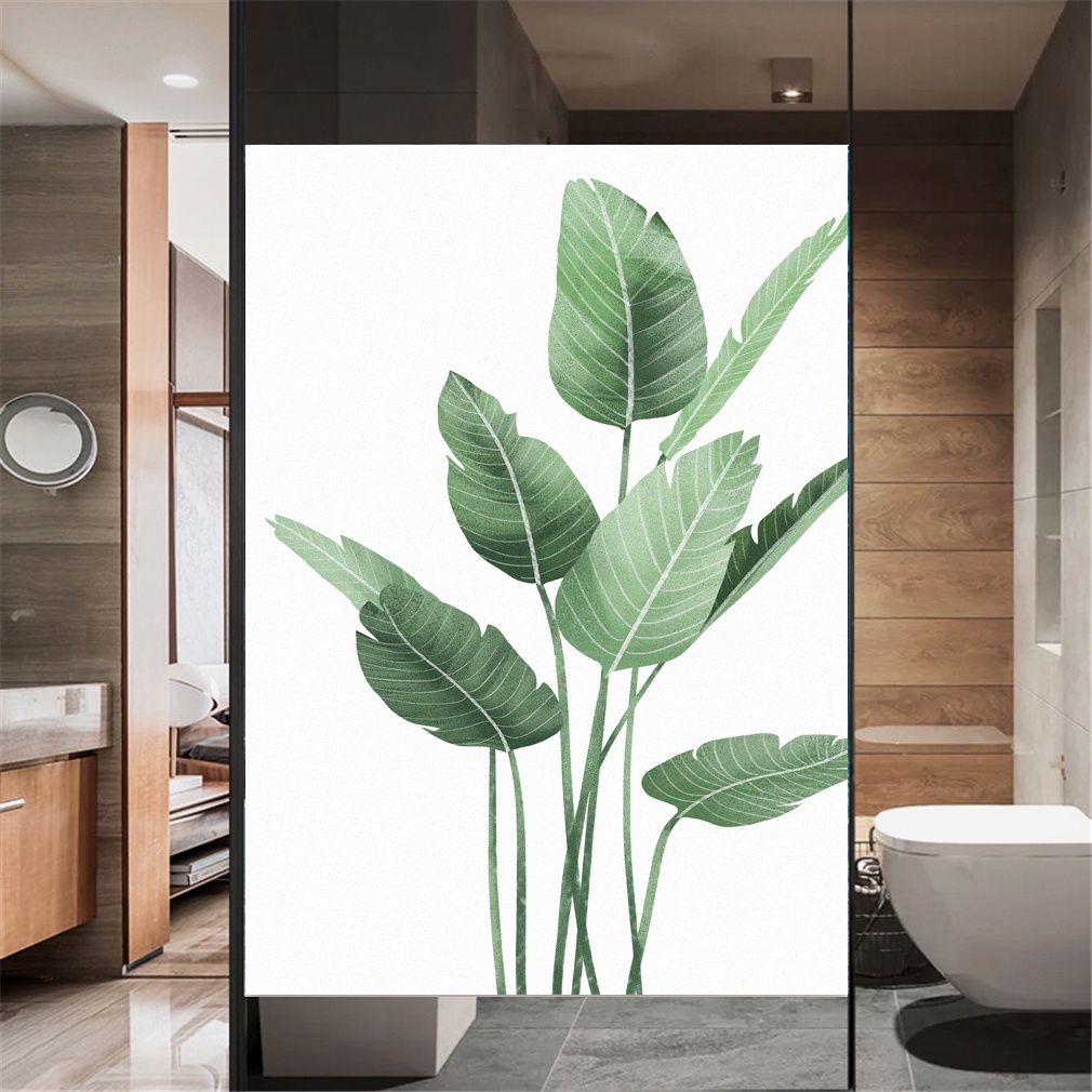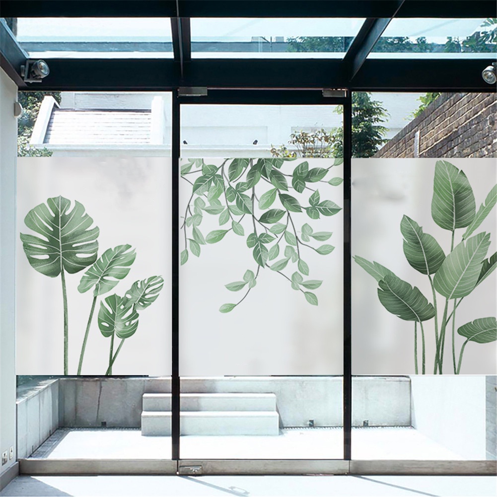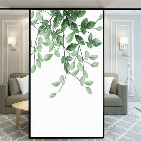 Privacy Windows Film Decorative Green Leaves Stained Glass Window Stickers No Glue Static Cling Frosted Windows Film For Home