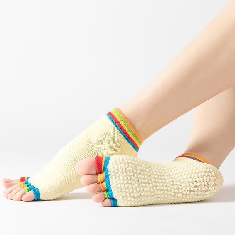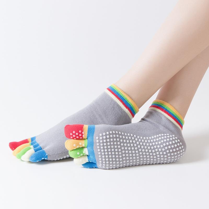 Professional Anti-Slip Yoga Socks/ Five-Finger Mid-Tube Pilates Grip Socks/ Breathable Dance Cotton Socks/sport socks
