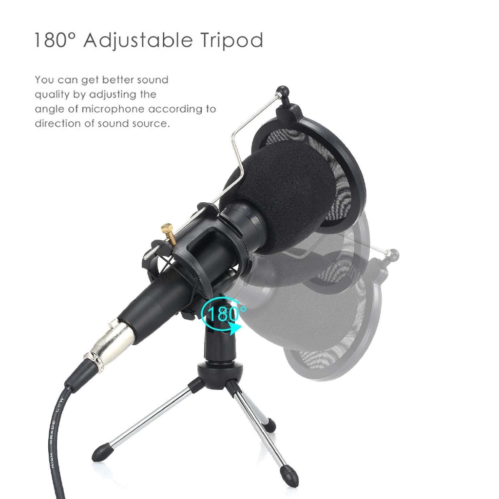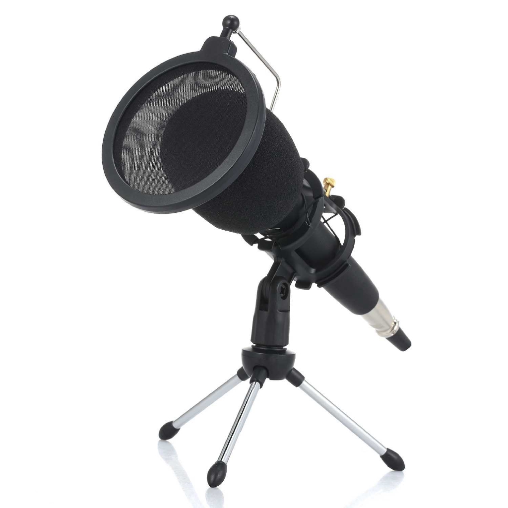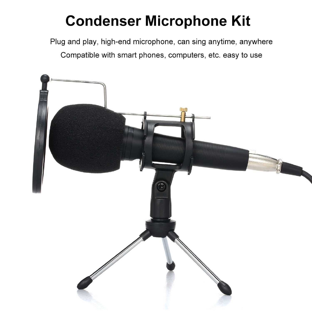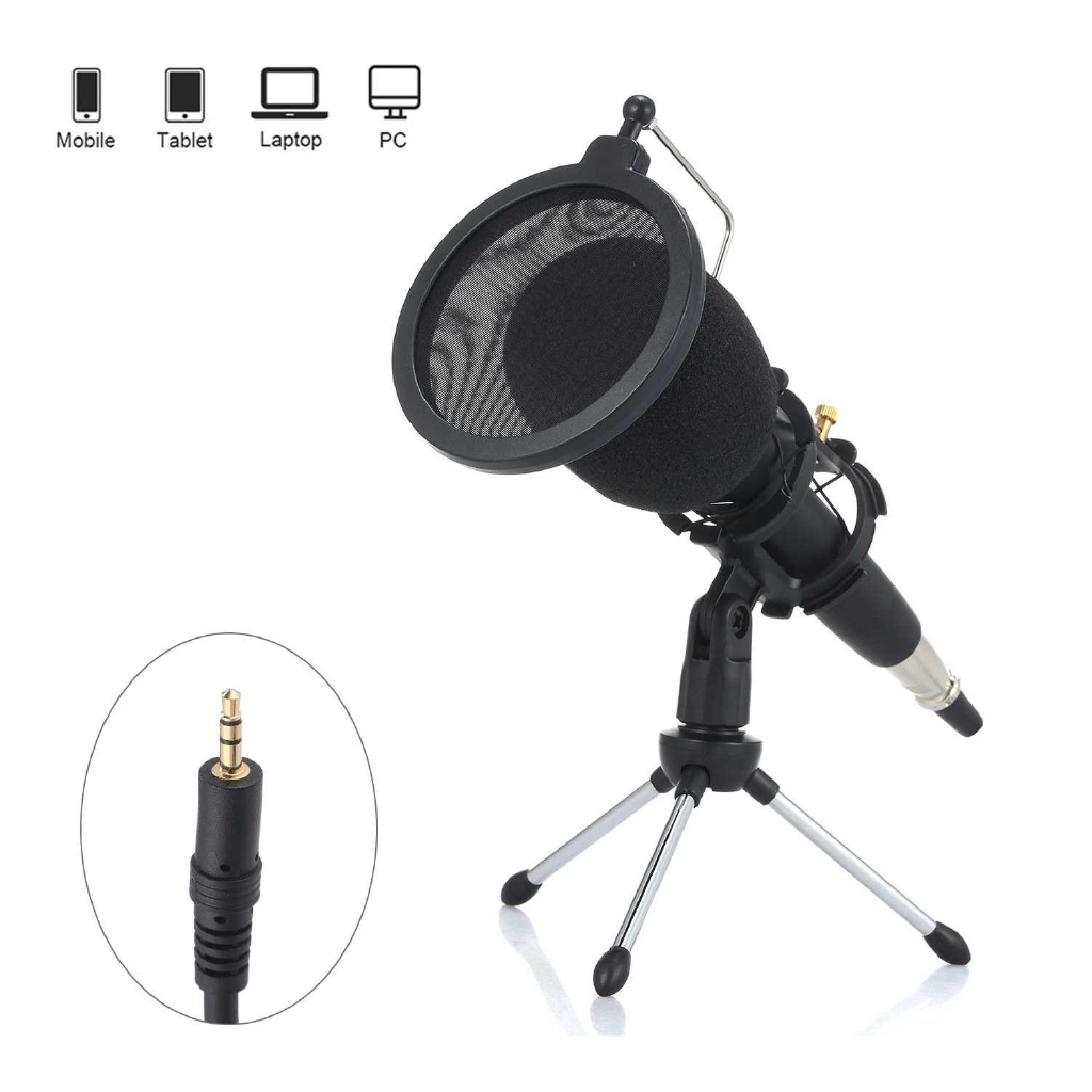 Professional Condenser Microphone with Stand 3.5mm for Computer Phone PC Microphone Mic for Sing Recording Live Broadca