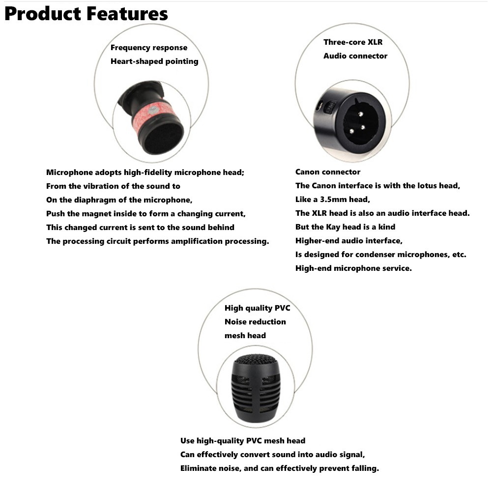 Professional Wired Dynamic Microphone Vocal Mic with XLR to 6.35mm Cable for Karaoke Recording