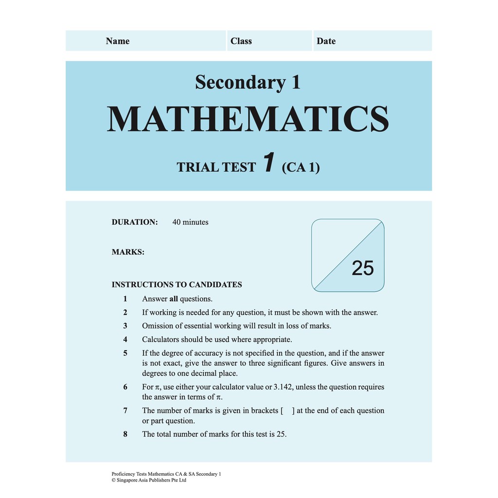 Proficiency Tests Mathematics CA & SA Secondary 1 - 4 | Revision | Secondary Math School Assessment Books - SAP