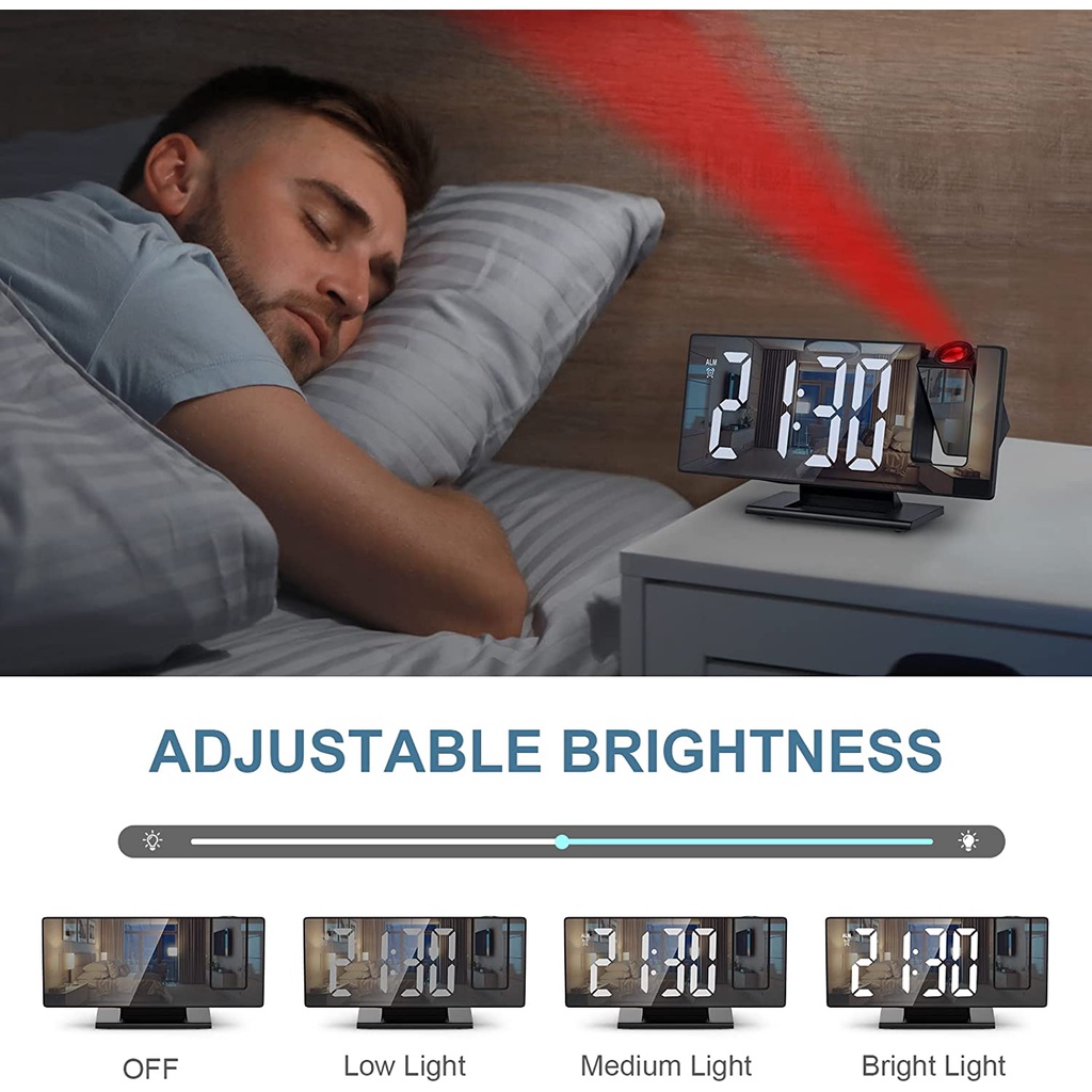Projection Alarm Clock Mirror Clock 12/24H Display Temperature Snooze Digital Clocks for Wall Bedroom Living Room