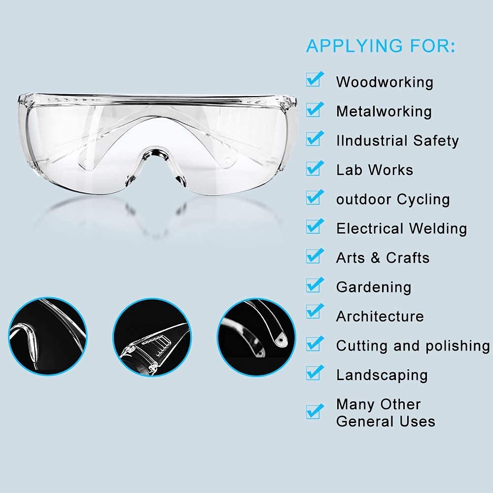 Protective Safety Glasses Transparent Anti-fog anti-scratch Eyewear Over Spectacles Anti-Splash for Lab Medical and Daily Use