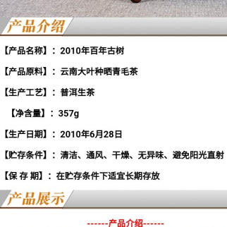 Pu Er Tea Pu Er Raw Tea Century Ancient Tree 357g