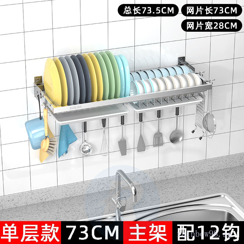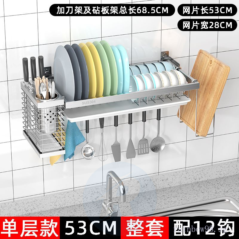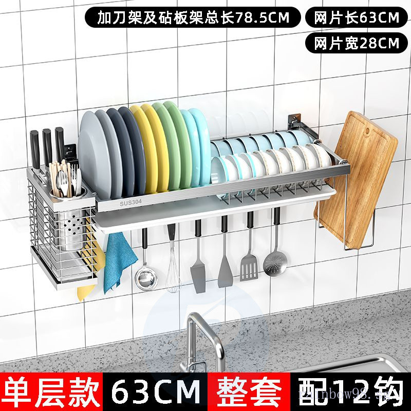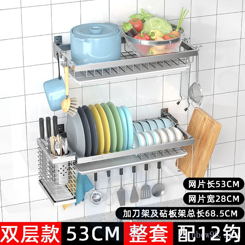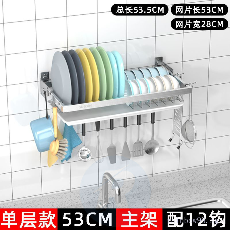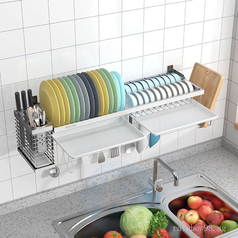 Punch-Free Wall 304 Stainless Steel Dish Drainer Wall-Mounted Kitchen Storage Rack Water Dish Rack Wall-Mounted with Water Collection Tray 5kya