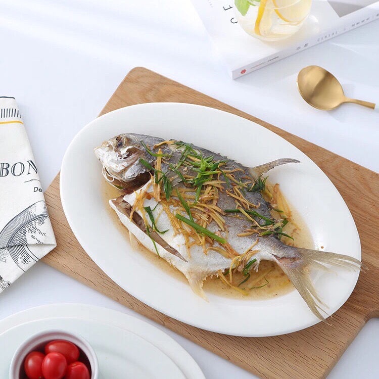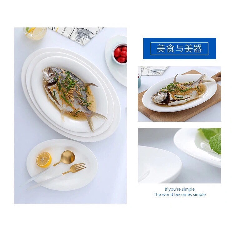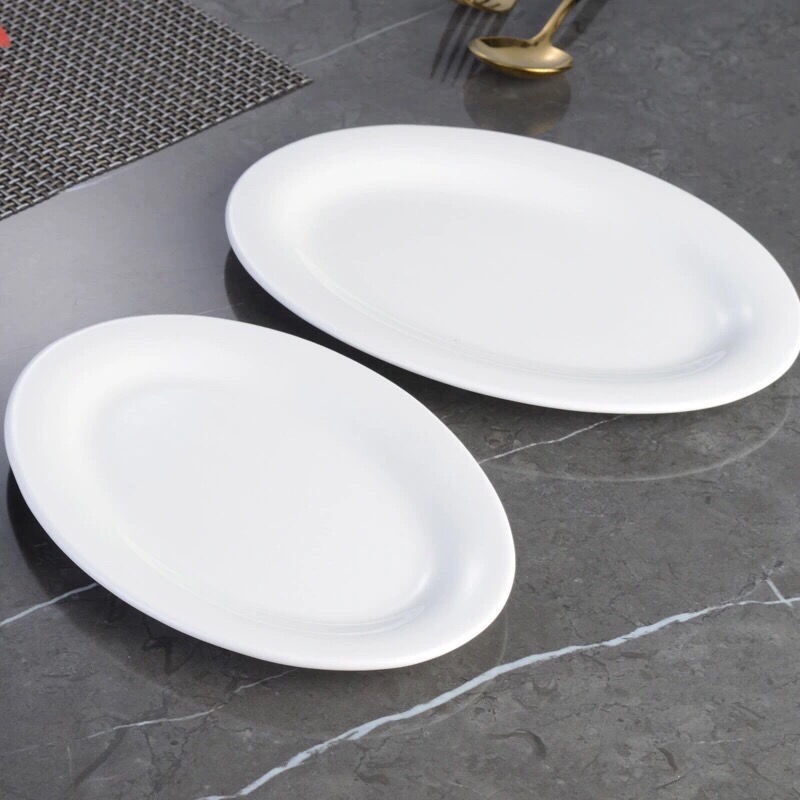 Pure White Ceramic 10/12/14/16-Inch Hotel Restaurant Catering Dish Meal Plate-Table Matters - Fish Serving Plate / Steamed Fish Plate Household Fish Plate Large Fish Dish/Tableware
