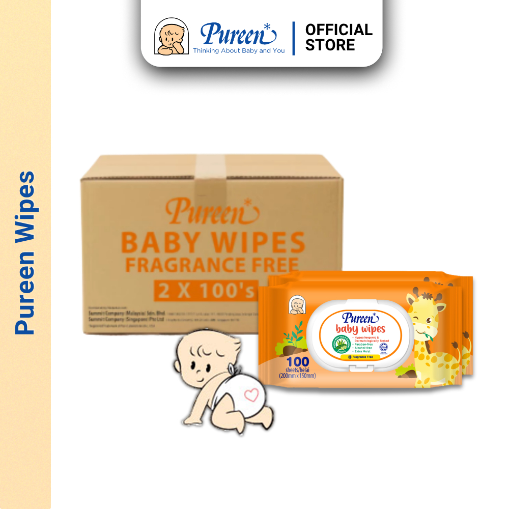Pureen Baby Fragrance-Free Wipes 2x100s x 12 Packs (Carton Sale)