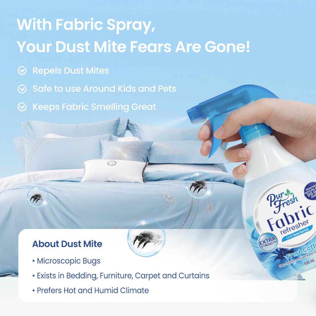 Purfresh Fabric Refresher 400ml Odor Eliminator Fabric Spray [ Multi-purpose Air Freshening Spray For Unwashables ]