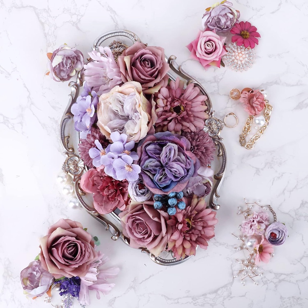 Purple Artificial Purple Flowers Combo Silk Mix Peony Rose Hydrangea Fake Flowers for DIY Wedding Bouquets Centerpieces Arrangements Table Party Bridal Shower Home Spring Decor
