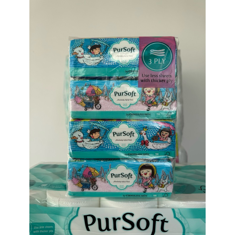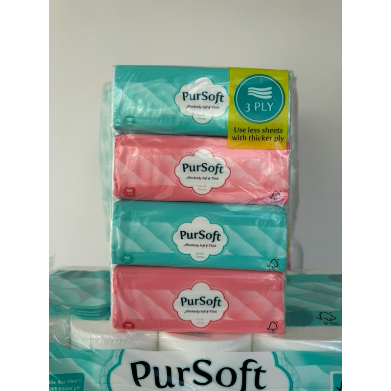 Pursoft Facial Tissue Unscented 3plys, 4s