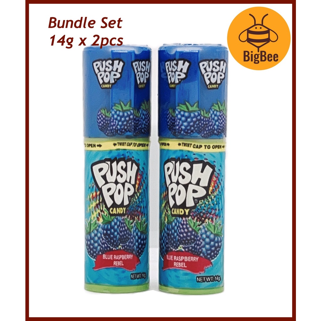 Push Pop Candy - 14g x 2pcs Assorted Flavours Strawberry / Grape Rage / Berry Blast / Blue Raspberry Rabel