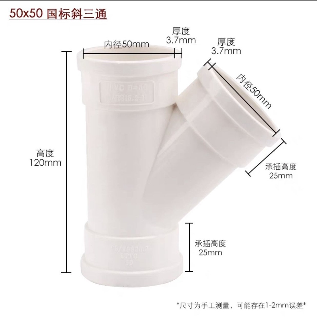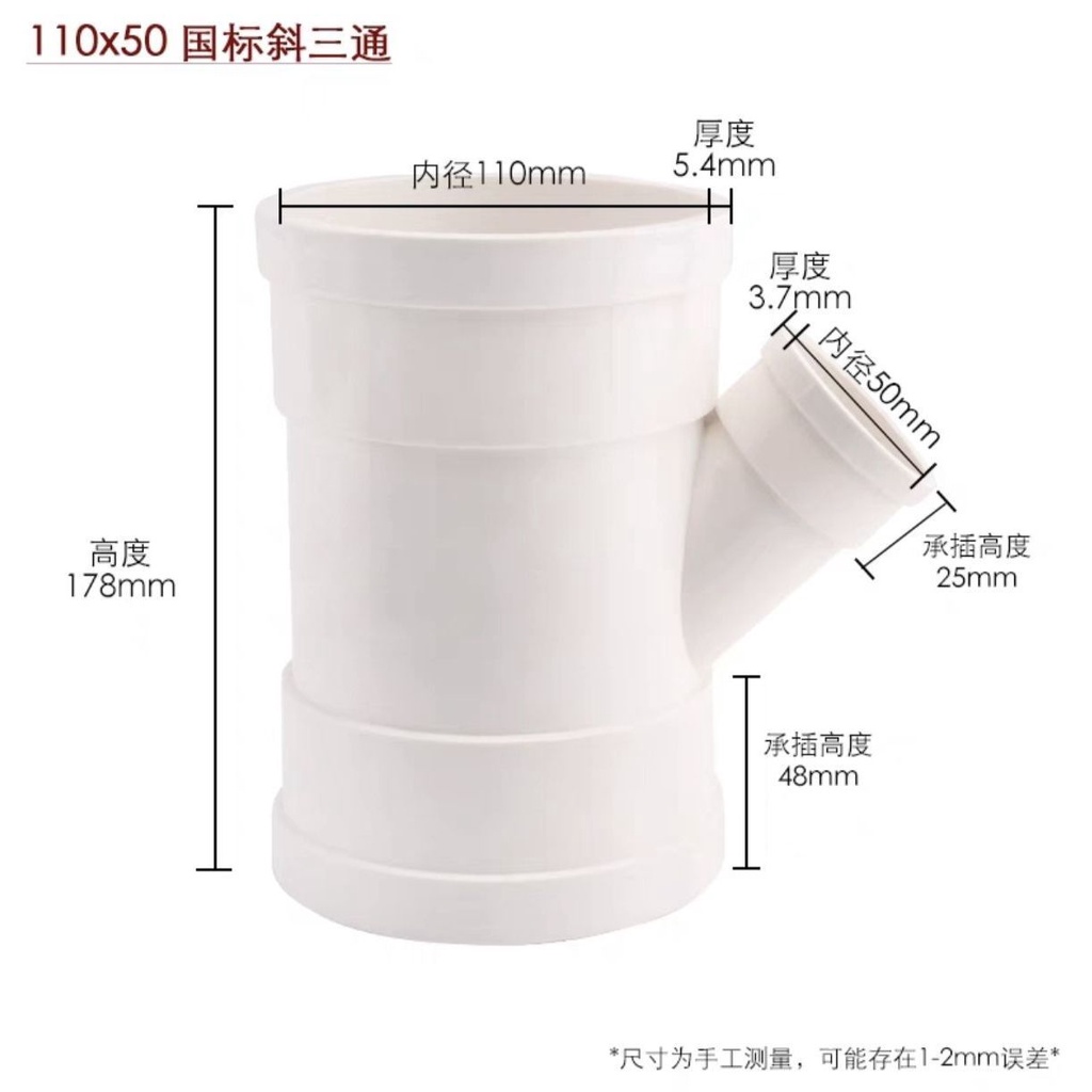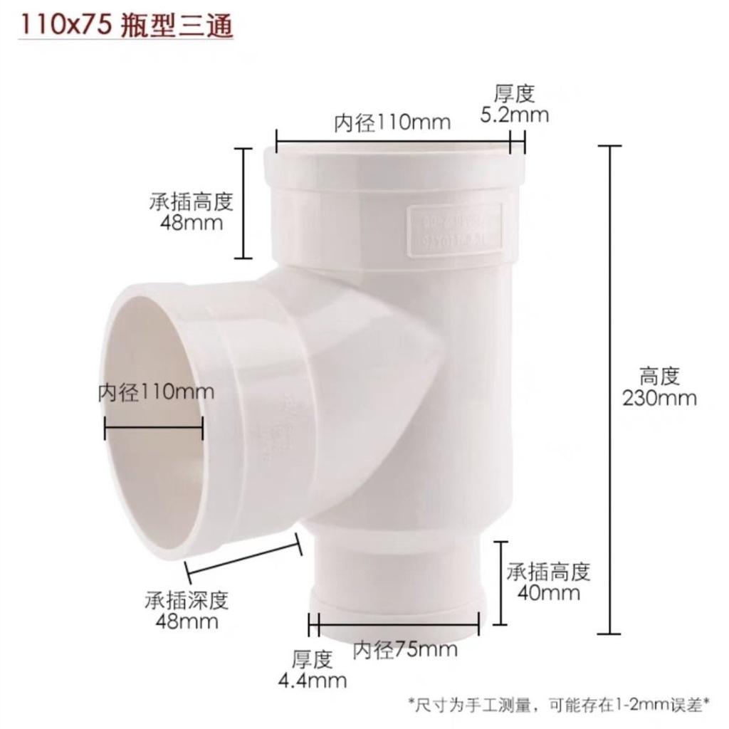 Pvc Tee Fittings Drain Pipe Positive Tee Joints Smooth Water Equal Diameter Drainage F5075110Sewer Fittings