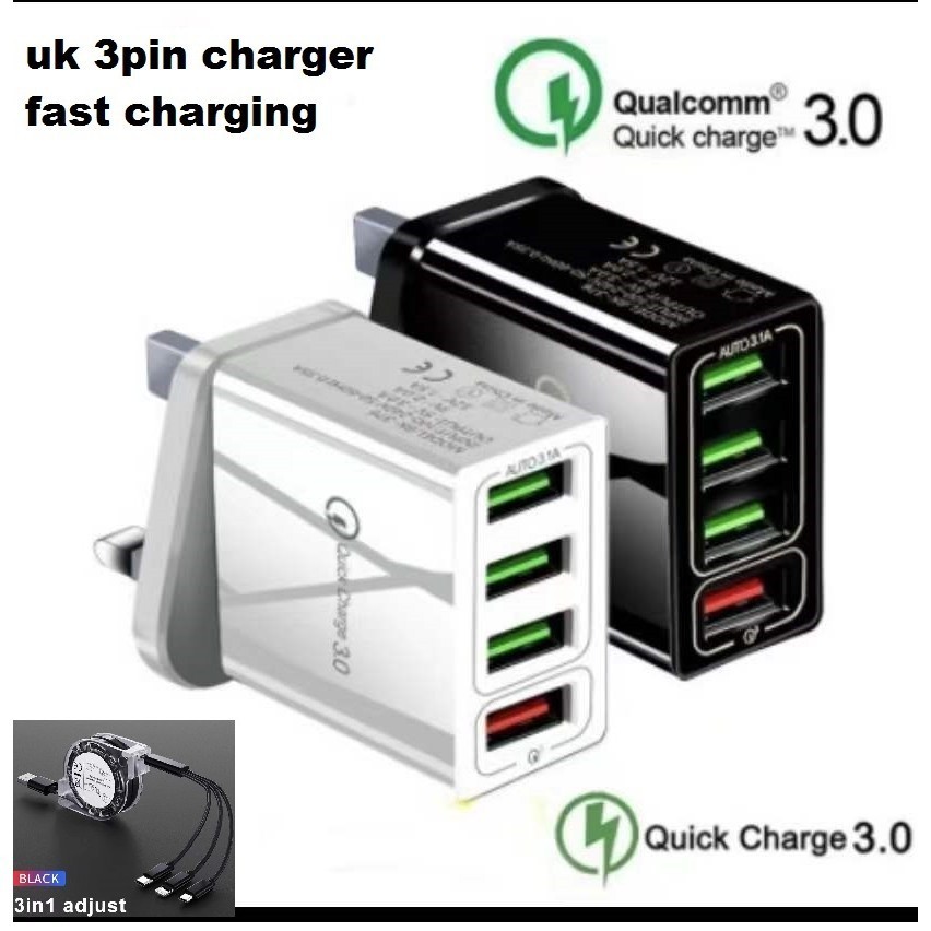 QC 3.0 Quick Fast Charge Adapter 30w UK Plug Mobile Universal Power Charger USB Power Adapter 3 Ports / 4 Ports