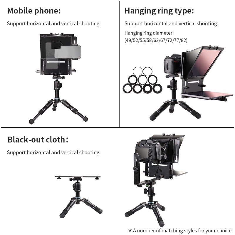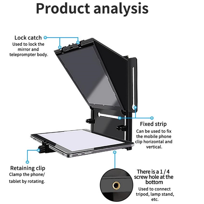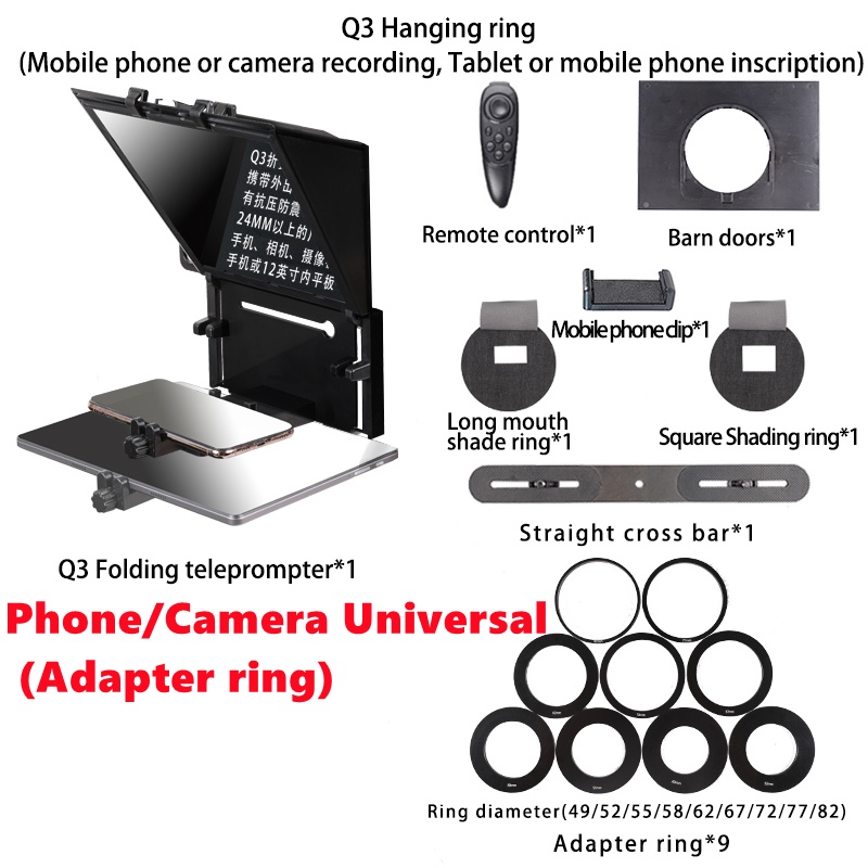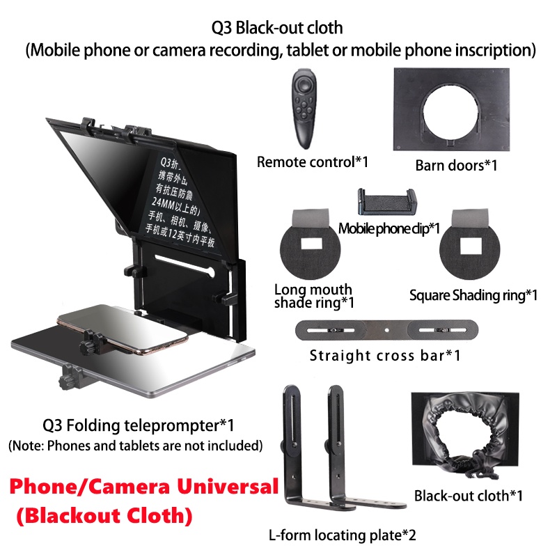 QIYE Q3 Foldable Teleprompter for 12" Tablet Phones Pad Prompting Phones Camera Shooting Tablet Prompter