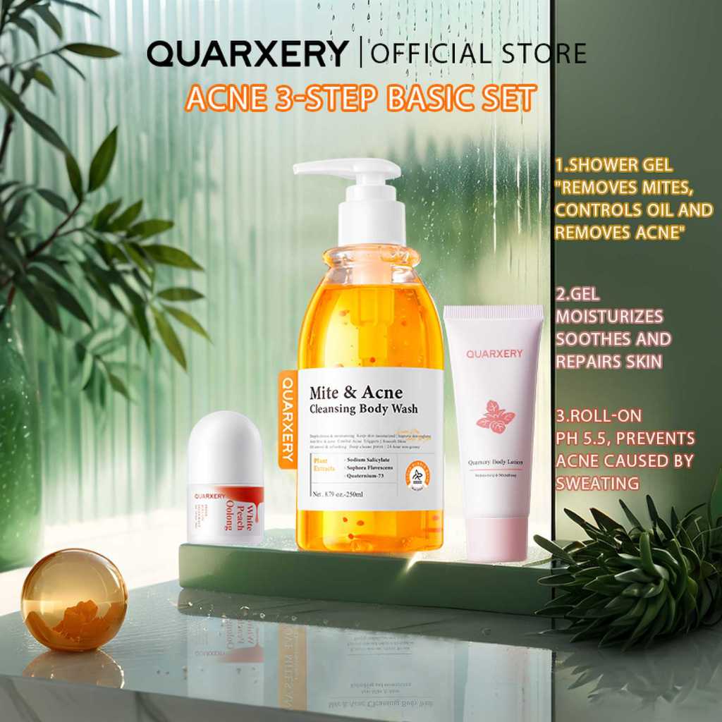 QUARXERY Acne Treatment Trio Mite & Acne Cleansing Body Wash - Body Care Gel - Roll-On Deodorant