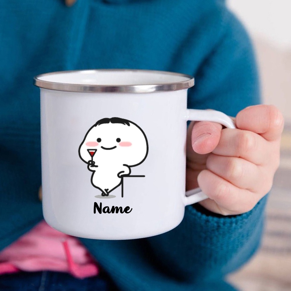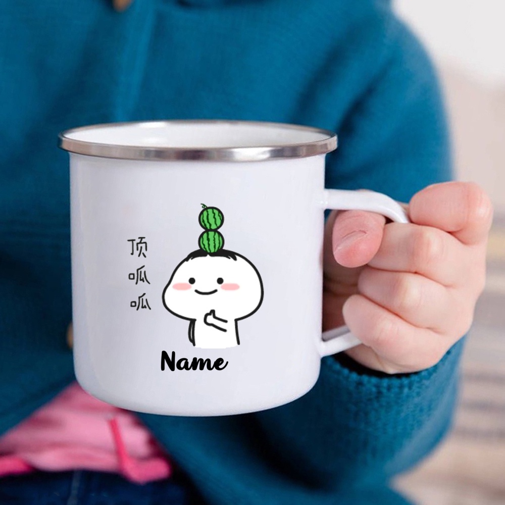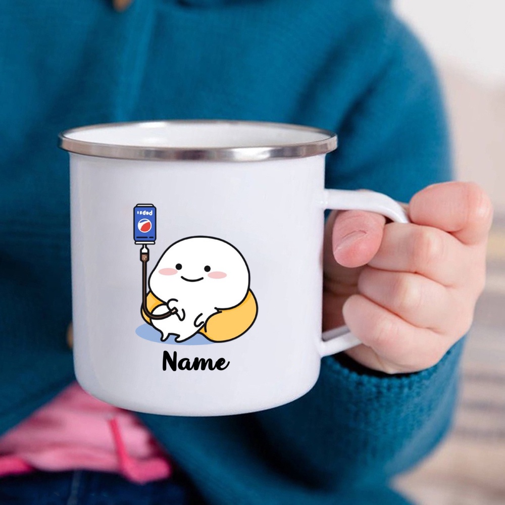 QUBY with name Custom Enamel Mug Cartoon Mug Water Cup QUBY Enamel Mugs Cute Gifts
