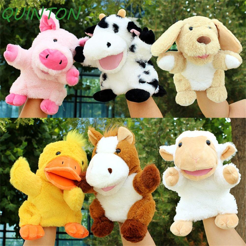QUINTON Stuffed Hand Doll, Dog Horse Sheep Movable Open Mouths Plush Animal Puppets, Kids Toy Stuffed Animal Storytelling Cow Duck Pig Teaching