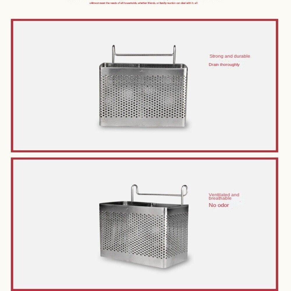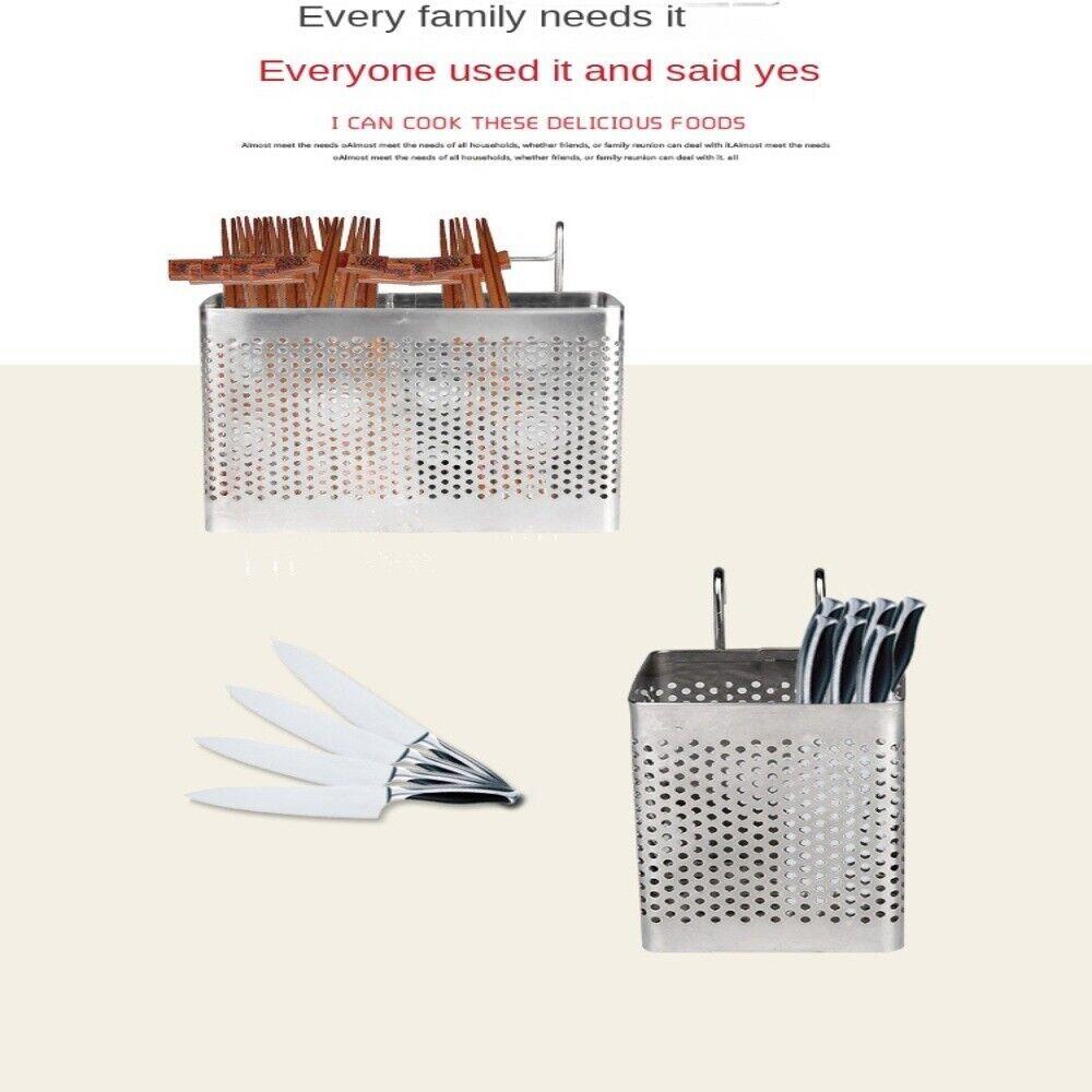 Quality Stainless Steel Kitchen Utensils Chopsticks Holder Drying Rack Basket With Hooks &1/2 Divided Compartments