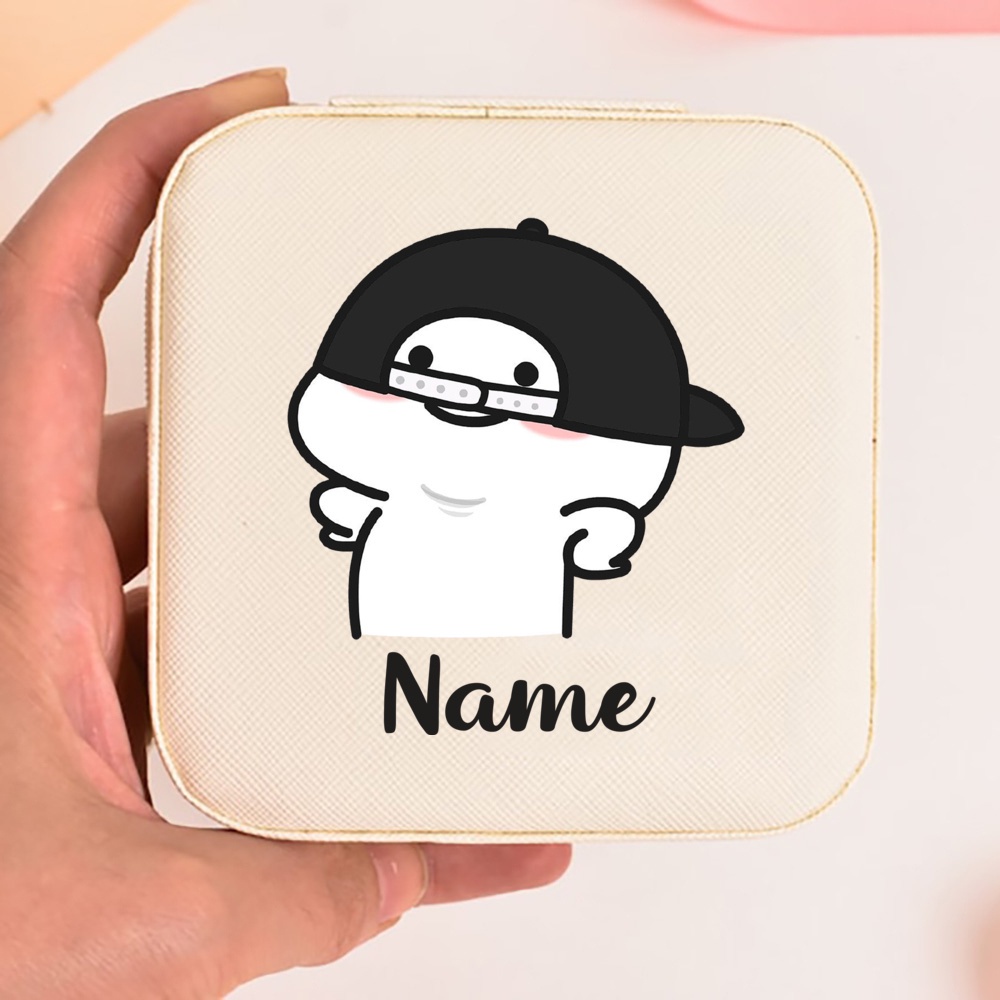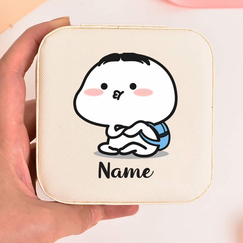 Quby with Name Print Custom Jewelry Box Rings Earrings Necklace Mini Storage Box Cute Travel Jewelry Box Gifts
