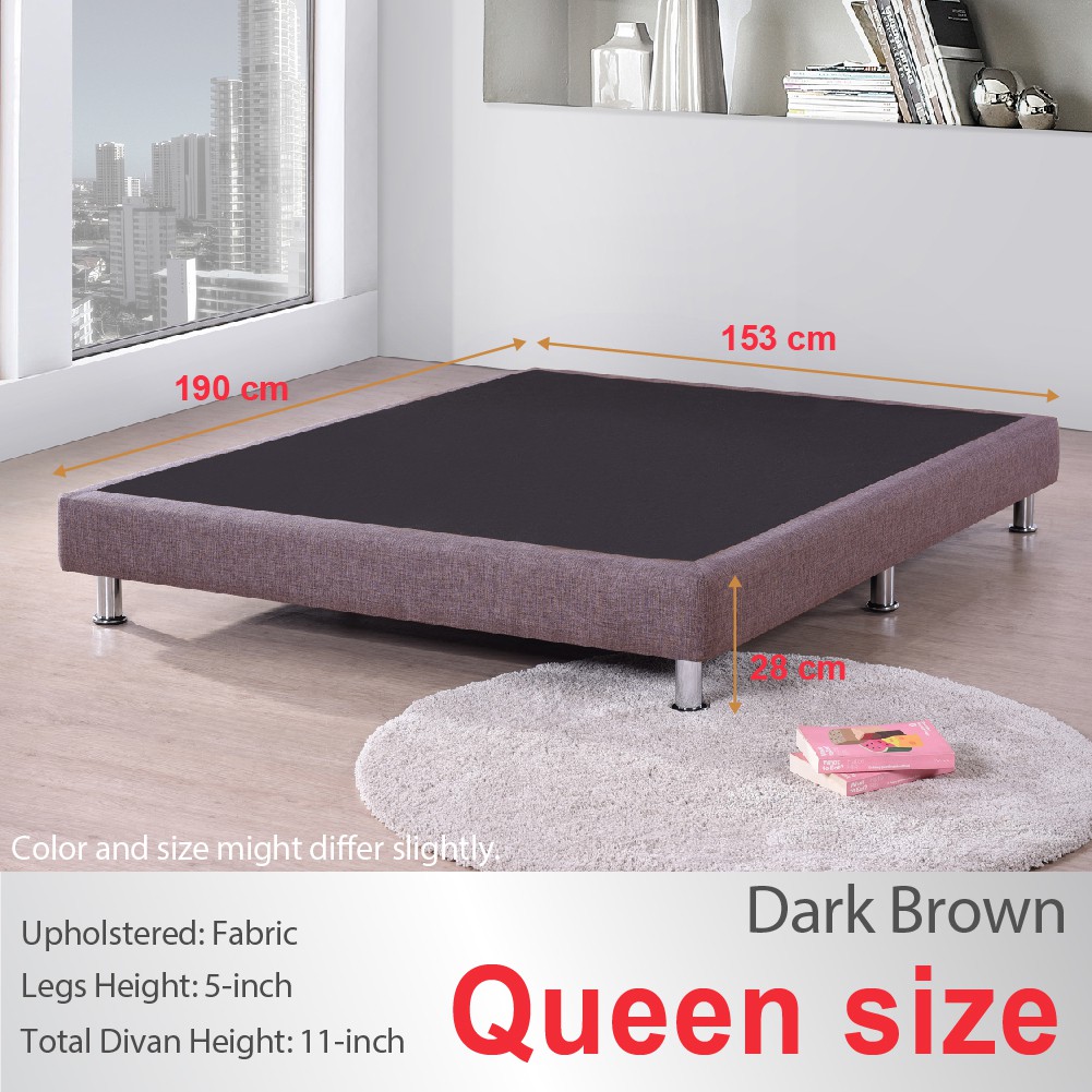 Queen Size * Divan Bed Base * Fabric Upholstery * Dark Brown * Metal Legs
