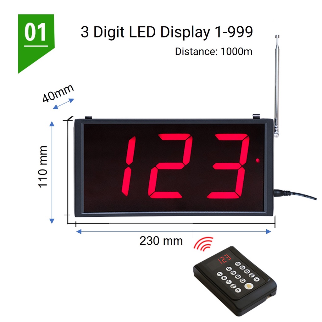 Queue Number Display Wireless Calling System 3 Digits Queue Number [Local Warranty]