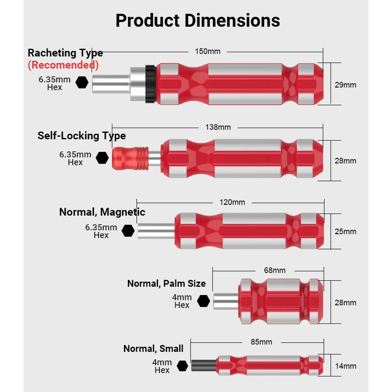 Quick Change Hexagon Bitholding Screwdriver, Ratcheting Ratchet Screwdriver Quick Release 1/4" 6.35mm Hex Bit Holder Manual Screwdriver Handle