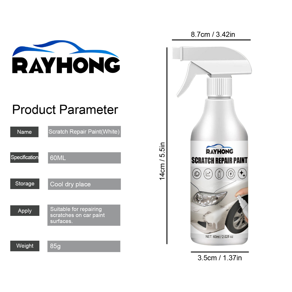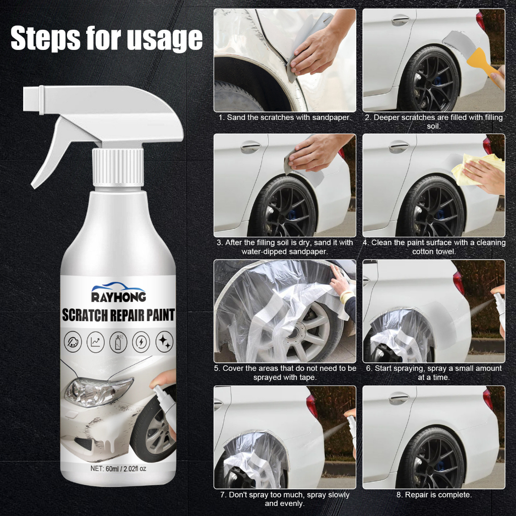 RAYHONG Car Scratch Removal Spray Black & White Portable Car Polishing Spray Deep Scratch Repairing Wax Scratch Remover Polishing Paint Scratch Removal And Paint Repair Spray 60ml