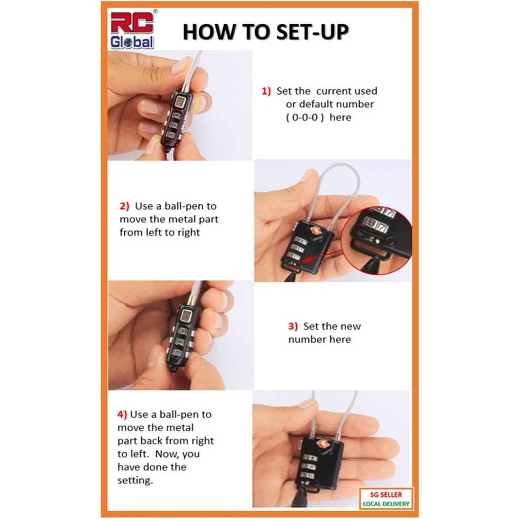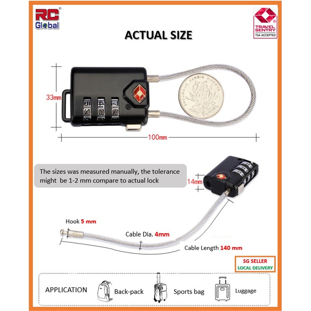 RC-Gadget Travel cable lock / TSA Travel cable Lock / Zinc Alloy cable lock / Password & Gym Lock