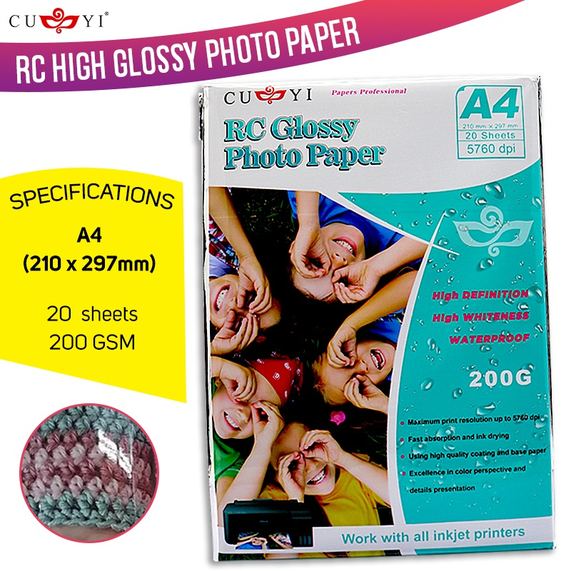 RC Photo Paper High Glossy Inkjet Photo Paper No Backprint 200gsm A4 Size (20 sheets)