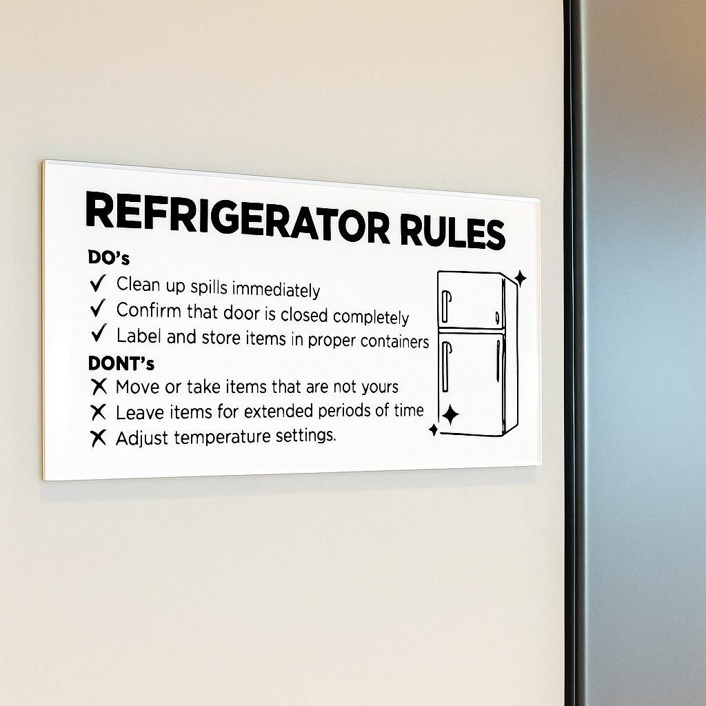 LE Acrylic Sign Refrigerator Rules Home Rentals Reminder Standard 9.5 x 4.3 in (1.8mm) Airbnb