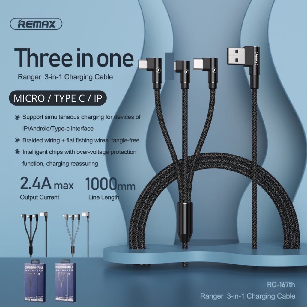 REMAX Cable 3 In 1 Cable L Shape Cable Type C Cable 3 In 1 USB Cable Ip 3 In 1 Charging Cable Android Cable PRRC167TH