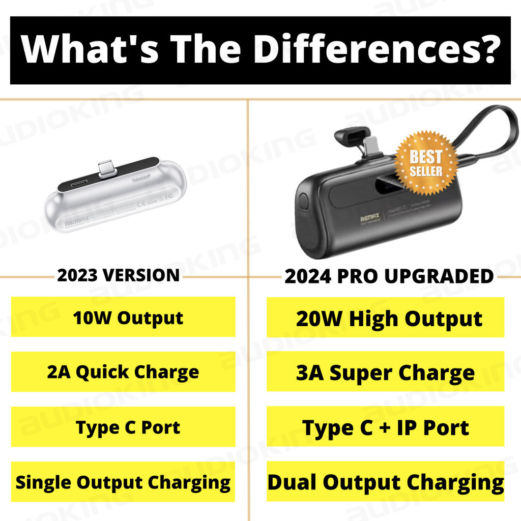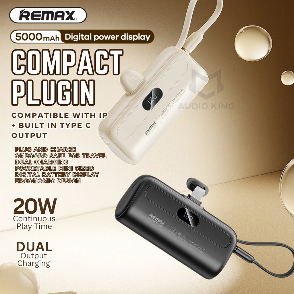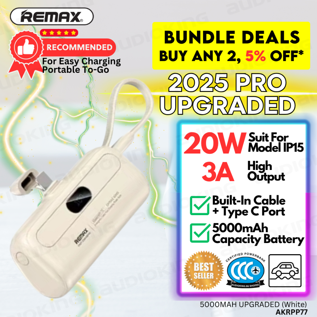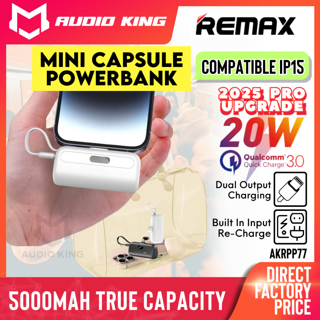 REMAX Original 3C Powerbank CCC Capsule Mini Fast Charging 20W For IP15 5000mAh With Built In Type C Cable AKRPP77