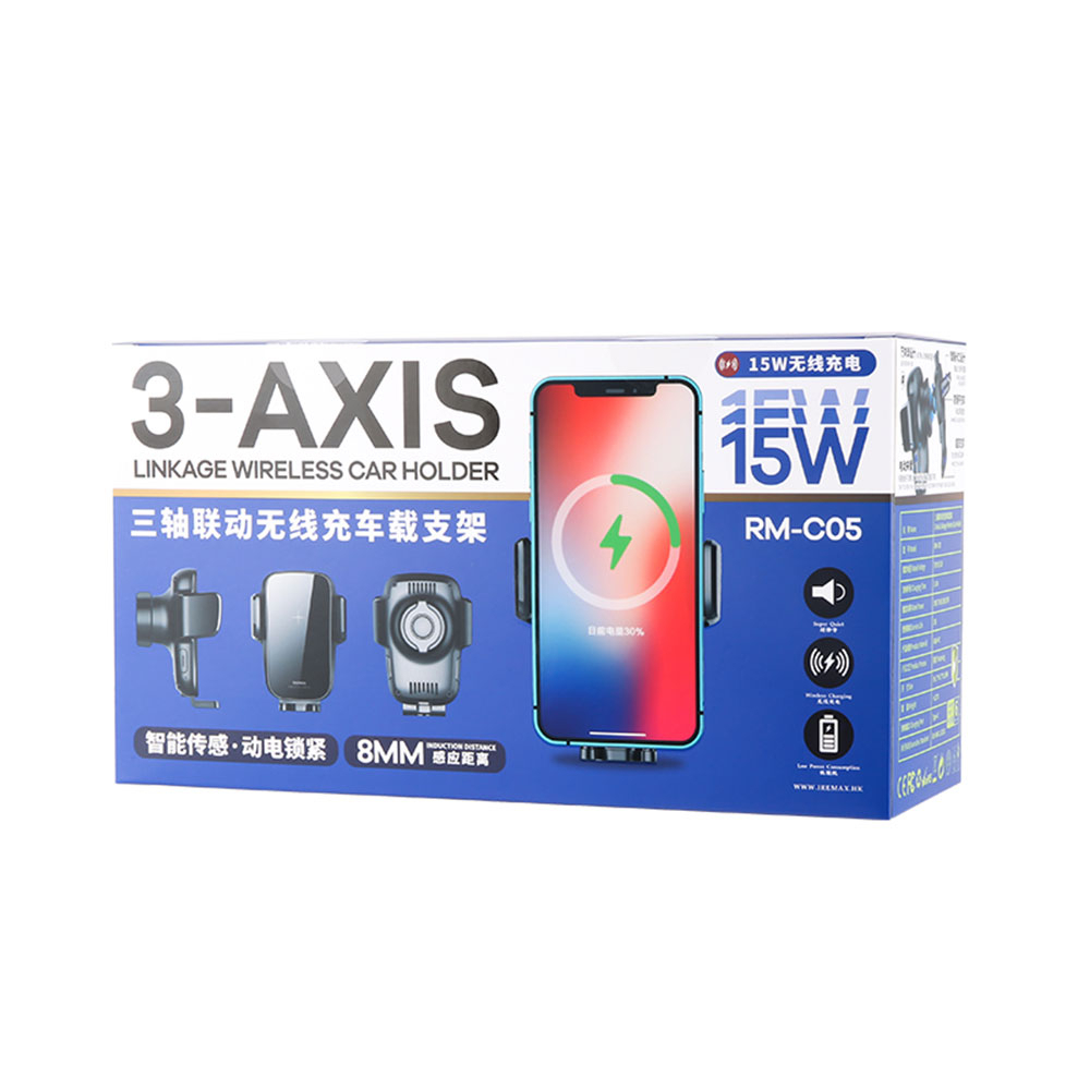 REMAX RM-C05 WIRELESS CHARGING ELECTRIC CAR HOLDER 3-AXIS LINKAGE WITH SUPER STABLE MOUNT HOLDING/ EASY PICK