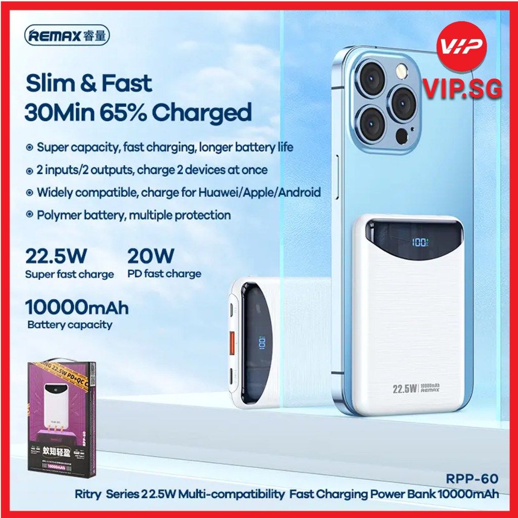 REMAX RPP-60 Powerbank 22.5W PD+QC Mini Compatible Fast Charging Power Bank 10000mAh