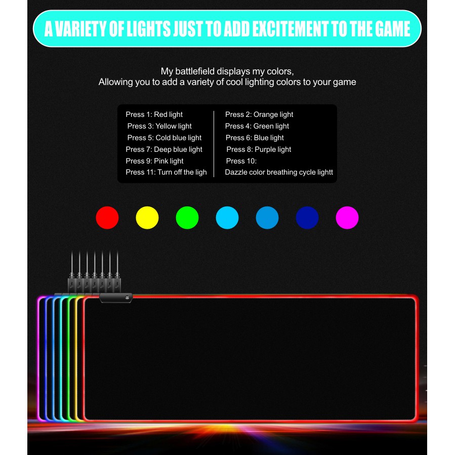 RGB LED Mouse Mat Large, Gaming Mouse pad with Multi Size pad and Multi LED Colour mode, Firm Anti Skid Rubber Base.