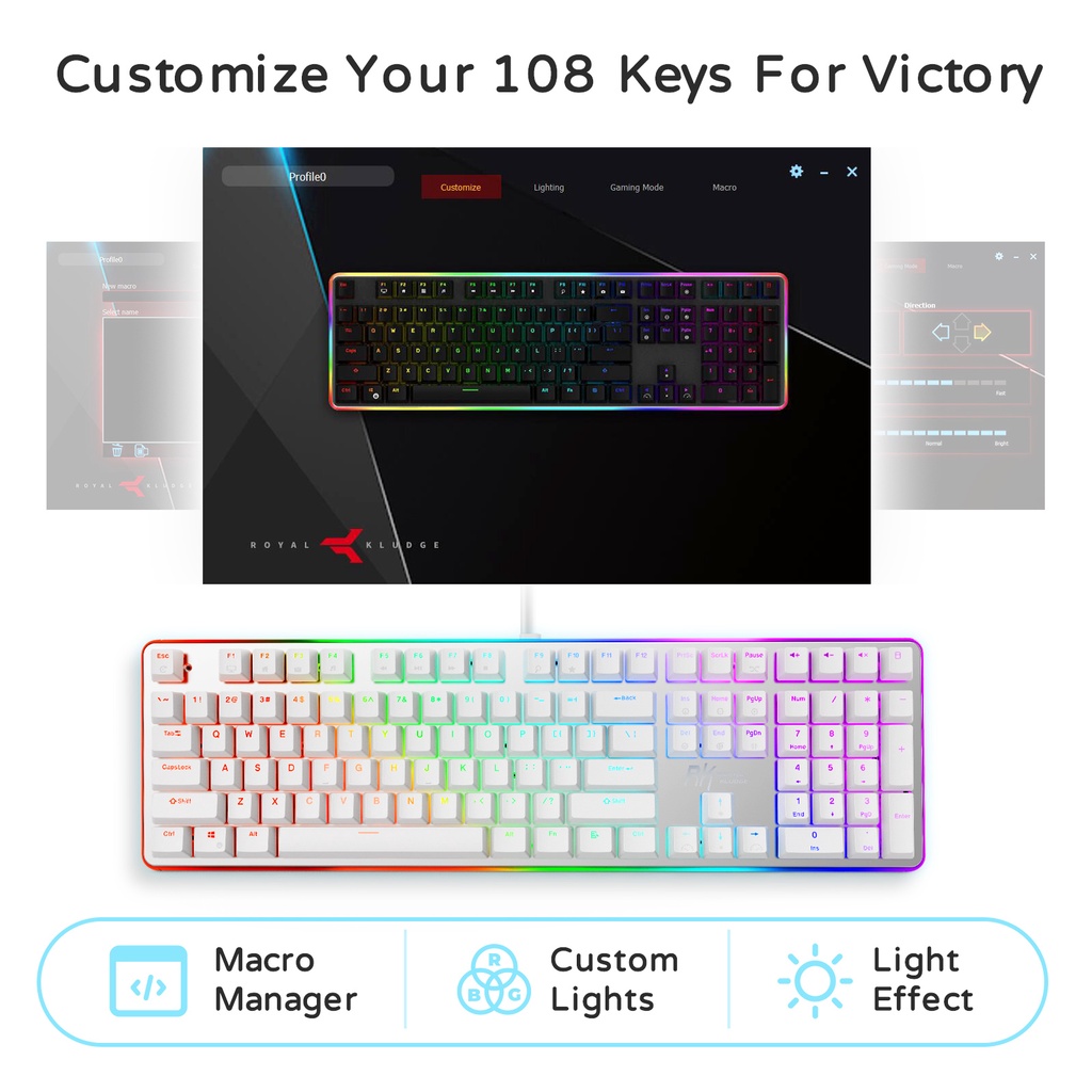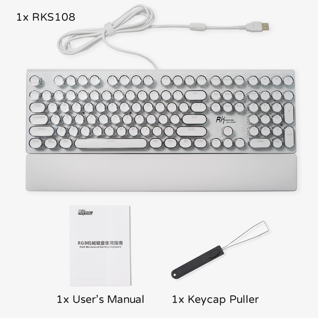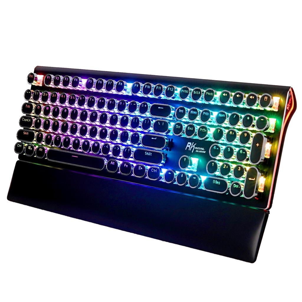 RK108/RK918/RK950 ROYAL KLUDGE Typewriter Mechanical Gaming Keyboard RGB Backlit Collapsible Wrist Rest 108-Key Blue Switch Retro Round Keycap