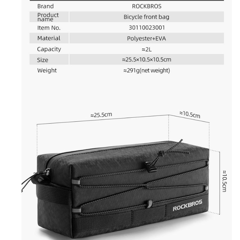ROCKBROS Bike Front Bag Waterproof Reflective 2L Bags Road Bike Bag Large Capacity Handlebar Front Frame Bag