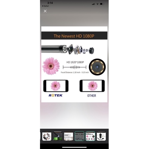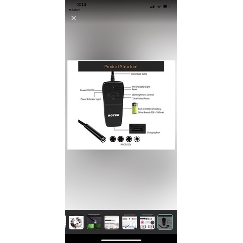 ROTEK RT-108 WiFi Wireless Endoscope, - 11.5FT