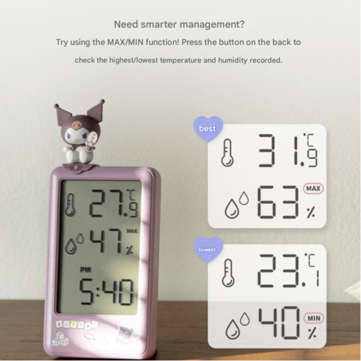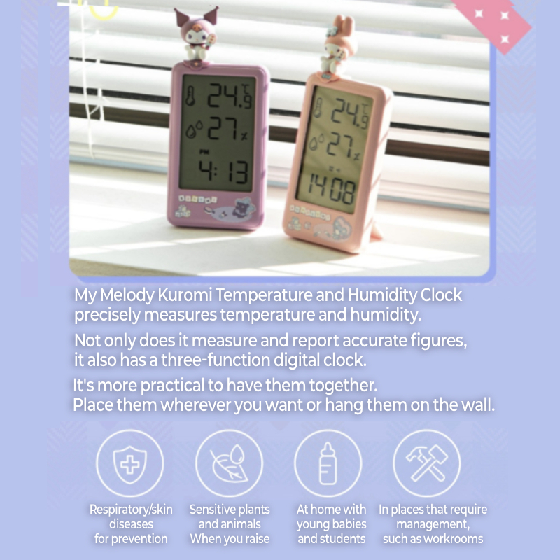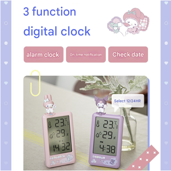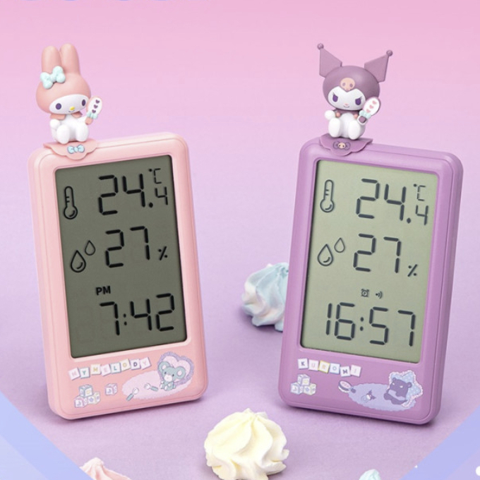 ROYCHE Sanrio Cute Digital Thermometer & Hygrometer Clock (My Melody / Kuromi)