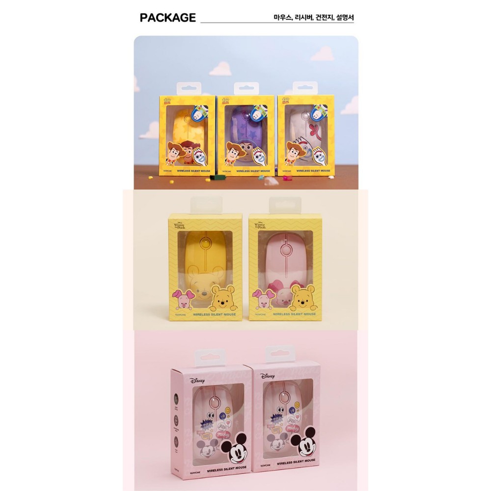 ROYCHE X Disney Wireless Mouse, Wireless Retro Keyboard (Pooh Piglet Mickey Mouse Toy Story Woody Buzz Forky) Mice/Laptop Computer PC with FREEBIES