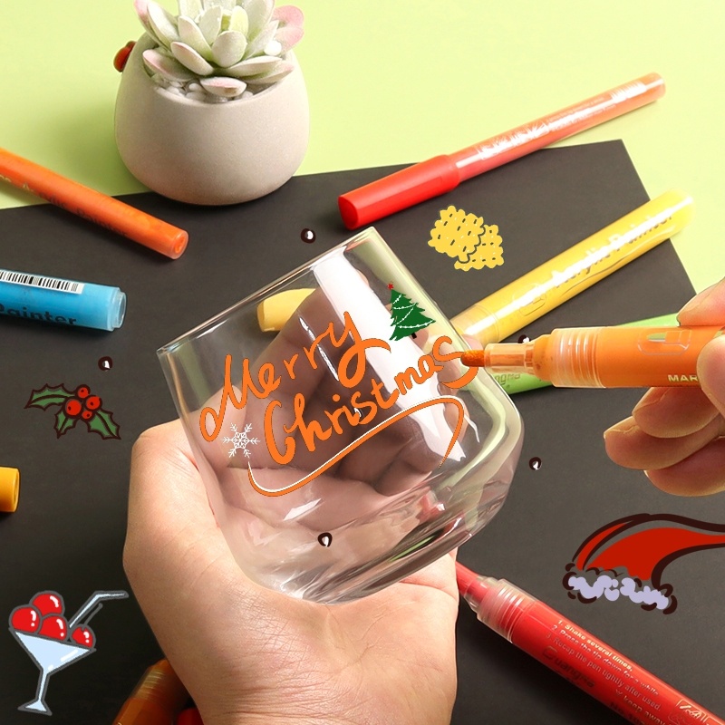 RUIXIANG Acrylic Marker Pen DIY on Glass/Stone/Fabric/Phone Casing drawing and graffiti